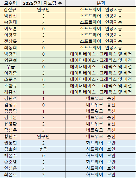 - 교수별 의무지도팀은 전기/후기 합쳐서 3팀입니다.
