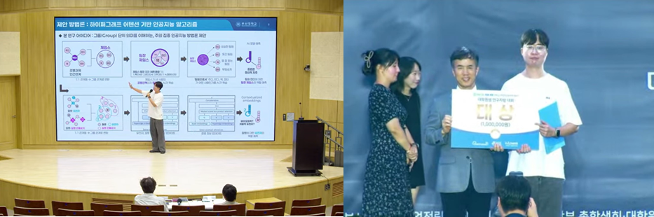 (출처 : PNU리서치, 홍보실, 2025-04-01, https://www.pusan.ac.kr/kor/CMS/Board/Board.do?mCode=MN270 mgr_seq=68 mode=view board_seq=1501914 )송길태 교수팀, AI로 질병 유전자 찾고 생체 지표 가능성까지 분석유전자 맞춤 치료 혁신…정밀 의료 새 시대 열린다 AI(인공지능)가 다양한 분야에 적용되면서, 질병 연관 유전자 발굴에도 AI가 활용되고 있다. 기존 AI 시스템에서는 단순히 특정 유전자의 질병 연관성만을 예측하는 데 그친 반면, 이번에 정보컴퓨터공학부 송길태 교수 연구팀이 유전자의 질병 연관성 예측과 동시에 해당 유전자가 질병 치료 타깃 또는 생체 지표 유전자로서 기능할 수 있는지 여부를 예측하는 AI 시스템 개발에 성공했다. AI를 통해 환자별 유전자 맞춤 치료를 제공하는 정밀 의료 시대가 앞당겨질 것이라는 기대도 커지고 있다. 송길태 교수팀은 부산대병원 순환기내과 이혜원 교수팀과의 공동연구를 통해, 질병에 대한 유전자의 치료적 유전자 타깃 및 생체 지표 유전자 여부를 예측하고 결과에 대해 충분한 설명을 제공하는 AI 시스템을 개발했다. 질병은 개인이 가진 여러 유전적 요소들의 복합적 상호작용으로 발생한다. 연구팀은 이 같은 상호작용을 반영해 어떤 유전자의 치료적 유전자 또는 생체 지표 유전자로서의 가능성을 예측하는 AI 시스템을 제안했다. 이 시스템은 하이퍼그래프(Hypergraph)* 및 어텐션(Attention)** 메커니즘을 사용해 질병에 관여하는 여러 생물학적 요소들 사이 복합적 상호작용을 모델링하고, 어텐션 연산 결과 시각화를 통해 모델 예측 결과에 대한 설명도 제공한다. * 하이퍼그래프(Hypergraph): 네트워크(Network) 형태 데이터의 일종으로 노드와 하이퍼엣지의 집합으로 정의되고, 각 하이퍼엣지는 2개 이상 노드를 동시에 연결하고 이들 사이 복합적, 공통적 상호작용을 포착한다. ** 어텐션(Attention): 최신 인공지능(딥러닝) 모델들에서 널리 쓰이는 계산 알고리즘의 일종으로, 인간의 ‘주의 집중’을 모방해 인공지능 모델이 중요한 정보에 좀 더 집중하고, 덜 중요한 정보는 상대적으로 덜 집중하도록 만드는 정보 연산 알고리즘이다. 모델의 어텐션 메커니즘 연산 결과를 시각화 하면 모델이 특정한 의사결정을 내리는 데 있어 어떤 정보를 좀 더 중요하게 반영했는지 알 수 있다. 연구팀은 DisGeNET을 비롯한, 생물학 전문가들에 의해 큐레이션 된 오픈소스 데이터베이스로부터 유전자, 유전자 온톨로지(ontology, 언어로 표현된 개념 간 연관 관계 지식이 드러나는 망), 질병, 질병 온톨로지, 그리고 인간 표현형 온톨로지 사이 관계 데이터를 얻어 개발한 AI 시스템을 검증했다. 【연구 개념도】송길태 교수는 “이번 연구는 기존 연구들이 질병과 유전자 사이 연관성 여부만 단순 예측했던 것에서 한 발 더 나아가, 특정한 유전자의 치료적 유전자 및 생체 지표 유전자로서 가능성을 정밀 예측하는 실전적 AI 시스템을 개발했다는 데 큰 의미가 있다”며 “제안 AI 시스템을 활용하면 단시간 내 특정 질병에 대한 치료적 유전자 후보군을 발굴하고, 이를 기반으로 질병 유발 유전자에 직접 작용해 질병의 근본 원인을 제거하는 정밀 의료 실현에 한 걸음 다가갈 수 있을 것”이라고 설명했다. 연구팀은 해당 AI 시스템에 대한 특허를 국내 출원 완료했고, 부산대 산학협력단의 지원을 받아 미국 특허 출원도 진행 중이다.이번 연구는 과학기술정보통신부와 한국연구재단의 기초연구실 및 중견연구 사업과 정보통신기획평가원이 지원하는 인공지능융합혁신인재양성사업의 지원을 받았으며, 정보컴퓨터공학부 송길태 교수가 교신저자, 대학원 AI전공 김기범 박사과정 연구원이 제1저자, 부산대병원 이혜원 교수가 공동저자로 수행했다. 질병과 유전자 사이 연관관계 예측에 대한 기존 AI 시스템의 한계를 극복할 것으로 전망되는 이번 연구 성과는 영국 옥스퍼드대가 발간하는 국제 학술지 『Briefings in Bioinformatics』 1월 22일자에 게재됐다.- 논문 제목: Therapeutic gene target prediction using novel deep hypergraph representation learning - 논문 링크: https://doi.org/10.1093/bib/bbaf019 * 상단 인물 사진: 왼쪽부터 김기범 연구원, 송길태 교수.[Abstract]As AI continues to advance across various fields, its application in identifying disease-related genes is expanding. While traditional AI systems only predicted gene-disease associations, a research team at Pusan National University has developed an AI system that also determines whether a gene can serve as a therapeutic target or biomarker. This breakthrough is expected to accelerate precision medicine by enabling gene-based treatments tailored to individual patients.Led by Professor Giltae Song in collaboration with Professor Hyewon Lee’s team at Pusan National University Hospital, the system uses hypergraph structures and attention mechanisms to analyze complex biological interactions and provide interpretable results. Validated through curated open-source biological databases like DisGeNET, the model enhances the accuracy of identifying therapeutic gene candidates.Professor Song emphasized that this research surpasses conventional methods by refining gene predictions, ultimately facilitating faster drug development and targeted treatments. The first author of the study, Kibeom Kim, a Ph.D candidate researcher in AI and a student of Professor Song, played a key role 