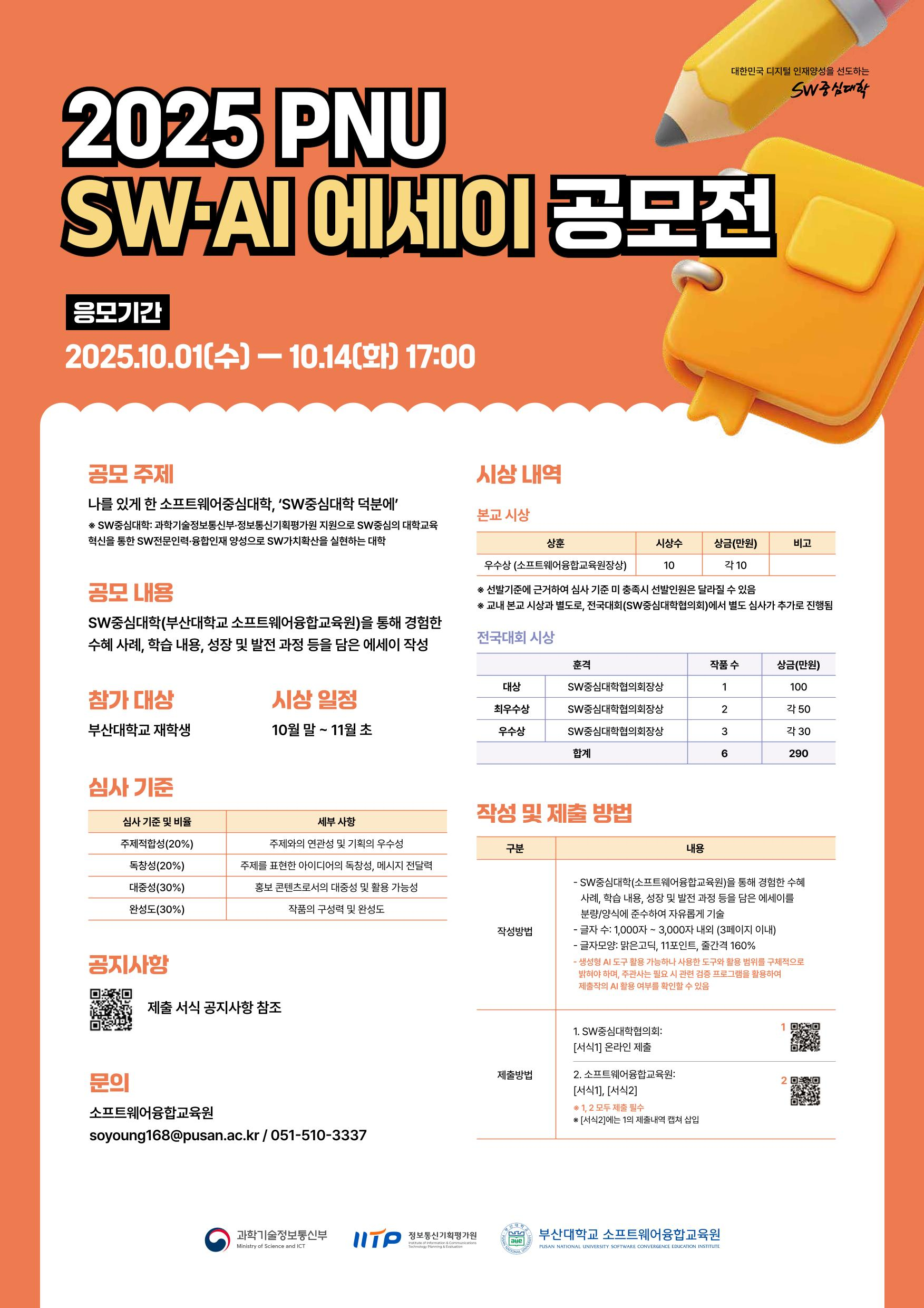 [SW융합교육원]2025 PNU SW·AI 에세이 공모전 참가자 모집(~10/14(화)까지)