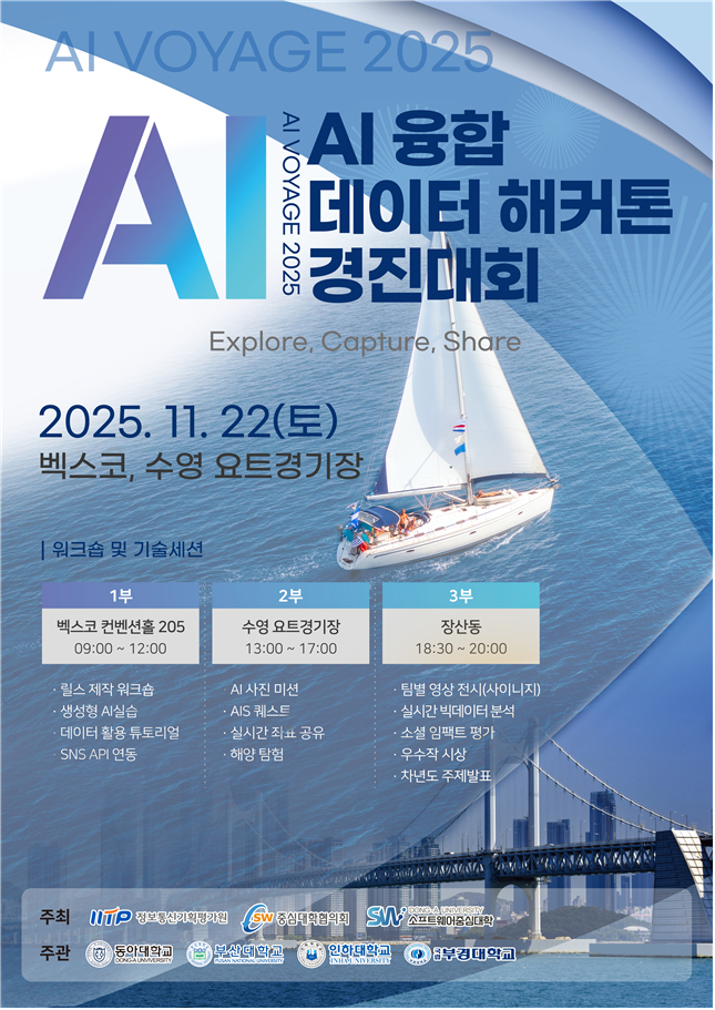 부산지역의 역사와 문화를 탐험하고, AI 기술을 활용하여 나만의 스토리를 창조하는 AI 융합 데이터해커톤 경진대회(AI VOYAGE 2025)에 참여할